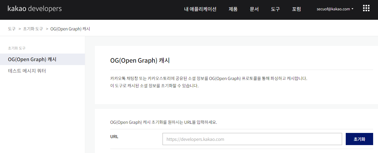 1. 카카오 개발자 페이지의 OG 캐쉬 삭제 페이지 접속